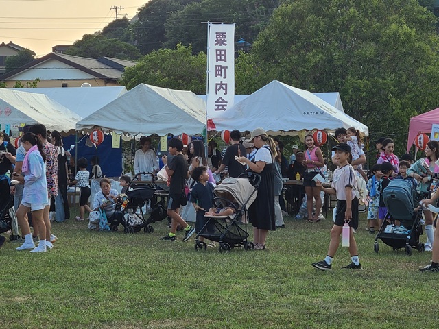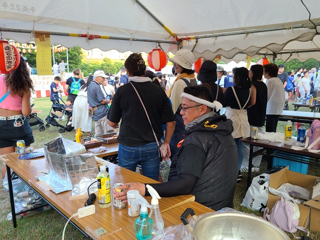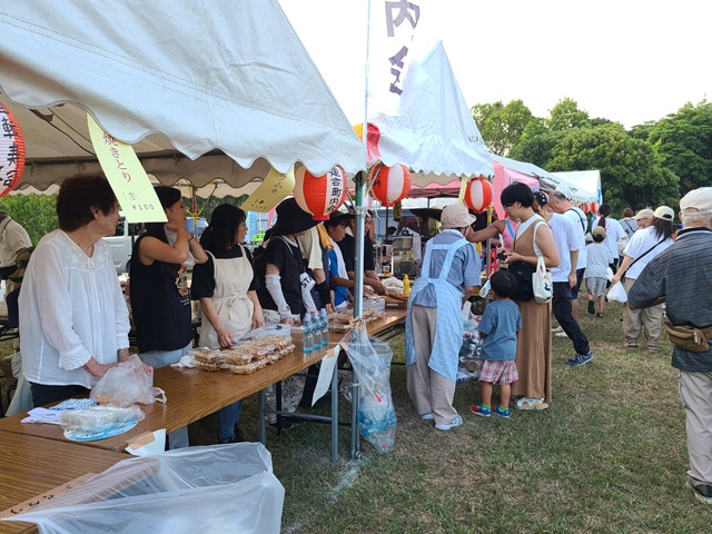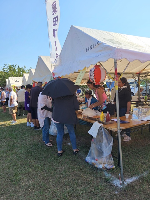 粟田町内会では焼き鳥、焼きそば、フランクフルト、ラムネを販売し好評のうちに完売しました。