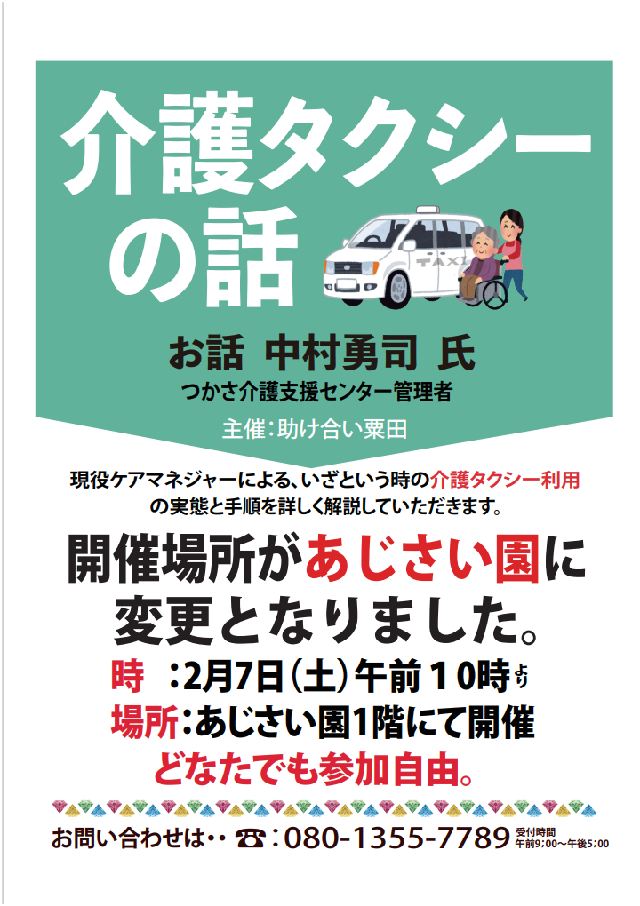 介護タクシー利用について 助け合い粟田千葉会員